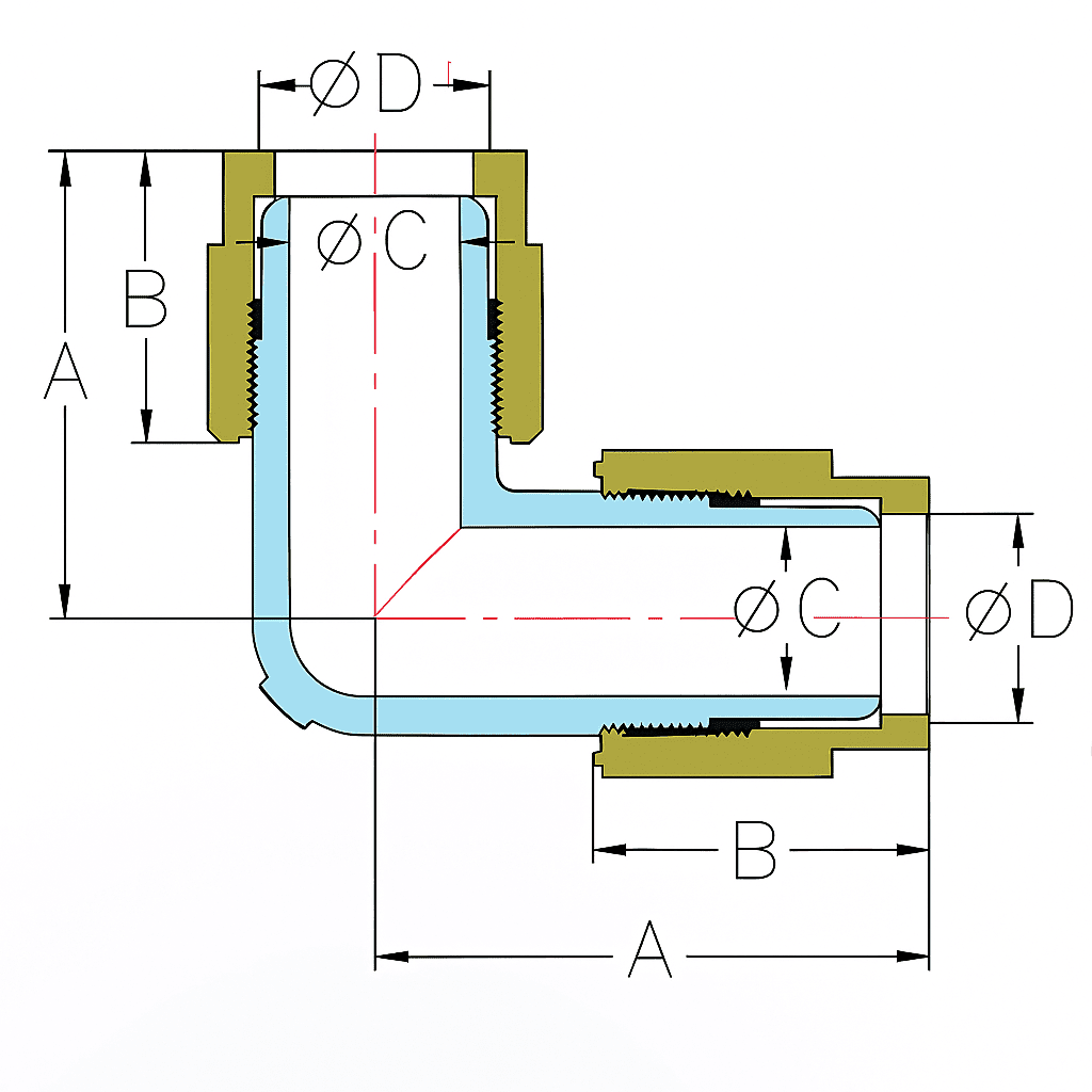 PFA 擴口 90° 等徑彎接頭採用高純度可溶性聚四氟乙烯(PFA)製成,符合 SEMI F57 標準,耐溫範圍 -200°C 至 +260°C,擁有優異的耐化學性、機械強度及高純淨度,適用於嚴苛及高潔淨應用需求。